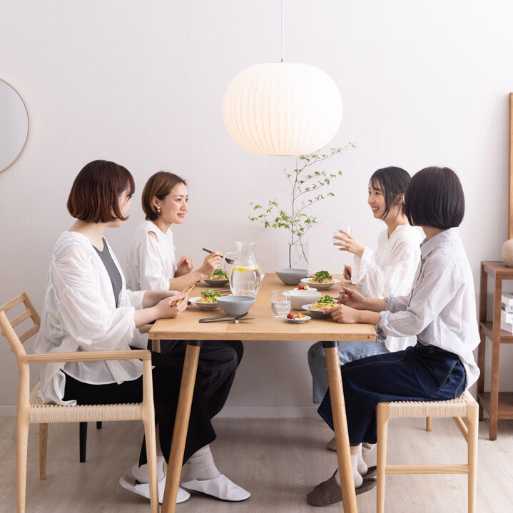 家族で囲む時間を大切にできる、幅135〜150cm前後の、少しゆとりのあるサイズ感を揃えました。