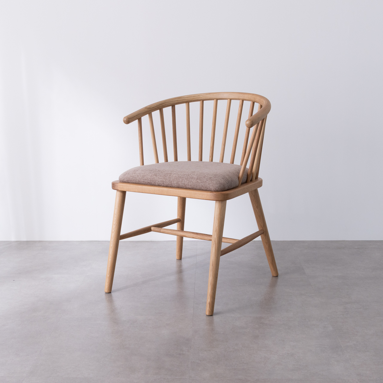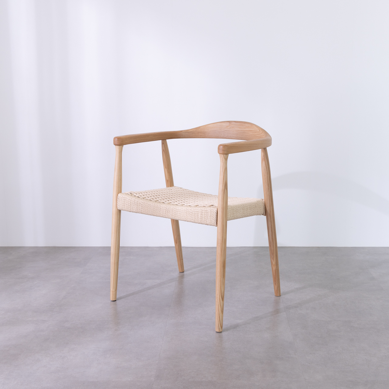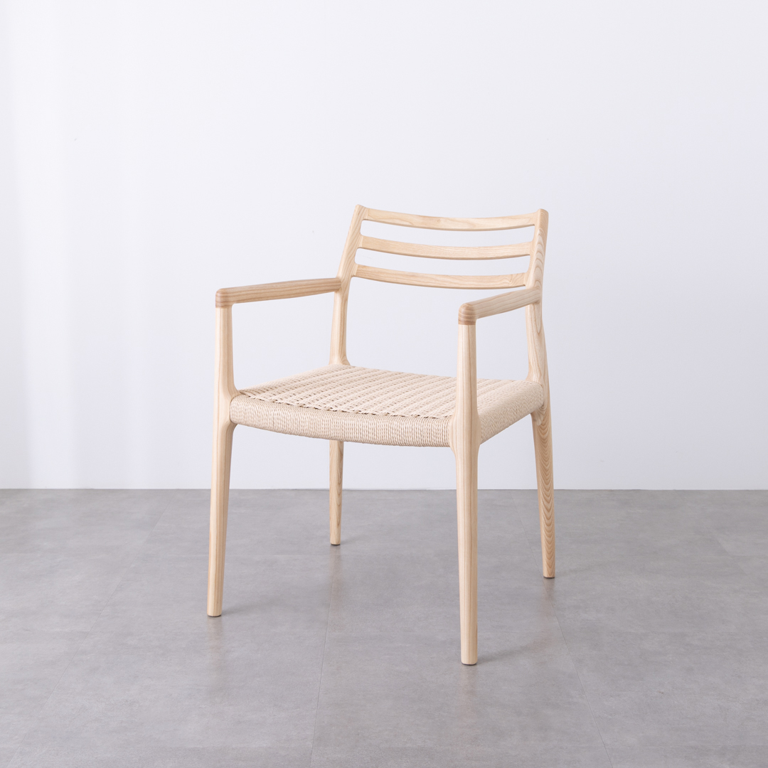 鹿の子編みと呼ばれる技法で編み込んだペーパーコードのチェアなどナチュラルなチェアを合わせると、あたたかみのある空間に◎