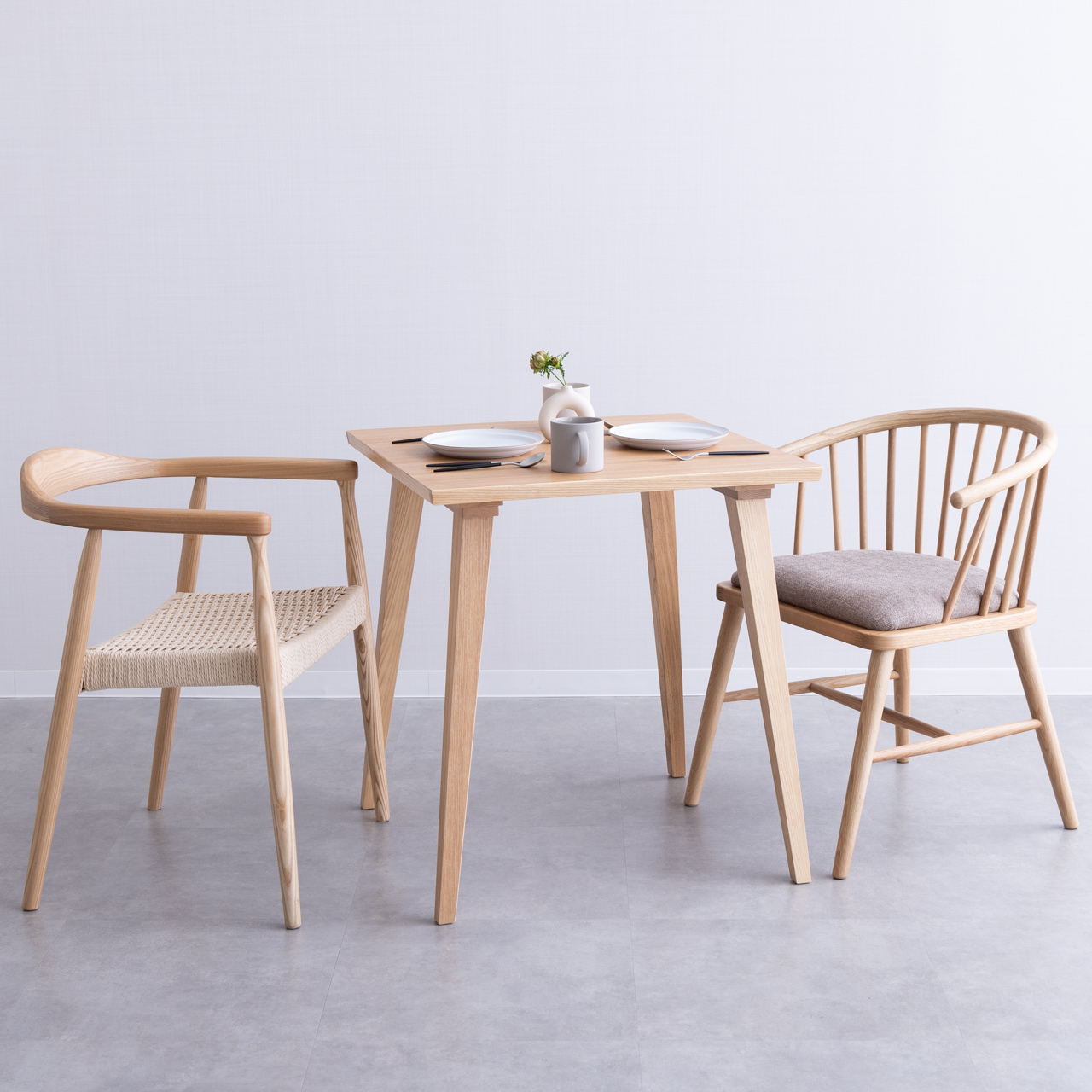 天然のアッシュ材を使用した正方形のシンプルなダイニングテーブル。
